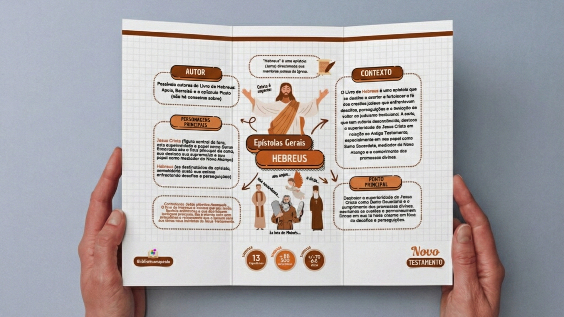 Com mais de 130 páginas de conteúdo, o material oferece mapas mentais com resumos ilustrados de cada um dos 66 livros da Bíblia.