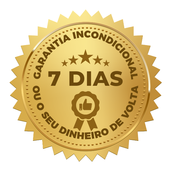 Temos tanta confiança na qualidade do nosso material que estamos te oferecendo uma garantia de 7 dias! Se você não ficar completamente satisfeito dentro desse período, devolvemos 100% do seu dinheiro.